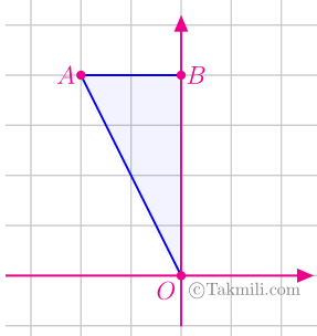 پس، \(A=\Big[{m\atop n}\Big]=\Big[{-2\atop4}\Big]\)، در نتیجه، \(m=-2\) و \(n=4\). بنابراین، مثلث \(OAB\) بهصورت زیر است.