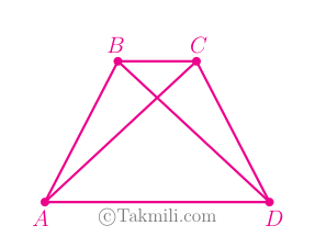 حالا، در چهارضلعی \(ABCD\)، همهٔ شرایط مسئله برقرار است ولی این شکل مثال نقضی برای همهٔ عبارتهای داده شده است.