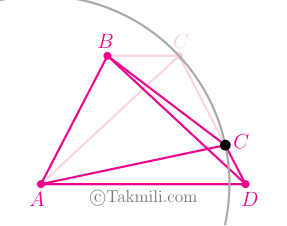 اما میتوان برای همهٔ عبارتهای دیگر نیز، مثال نقض ساخت. در شکل بالا، دایرهای به مرکز \(A\) و شعاع \(AC\) رسم میکنیم.